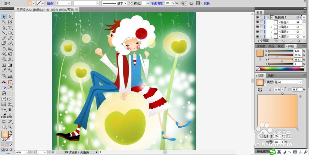 ai中想要画一个浪漫的矢量图片,比如男孩与女孩坐在一个心形的光球上面,周围都是闪亮的心形光球的场景,该怎么绘制呢?下面我们就来看看详细的教程。