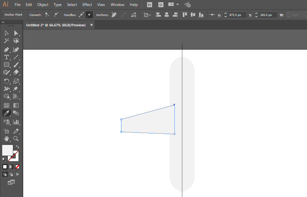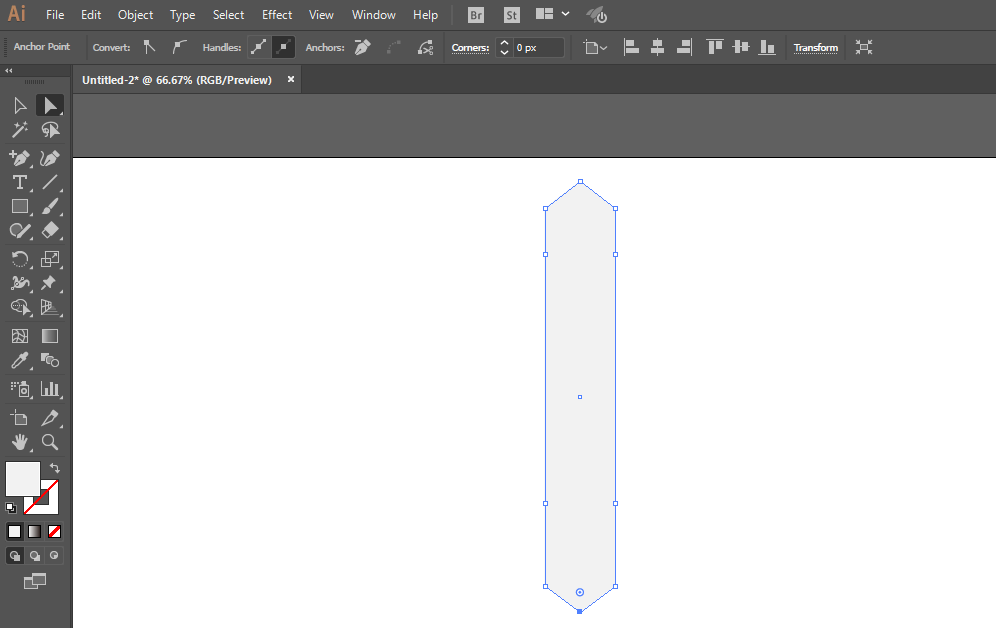 2、矩形工具绘制长方形,新增锚点在上下方,并且移动锚点。
