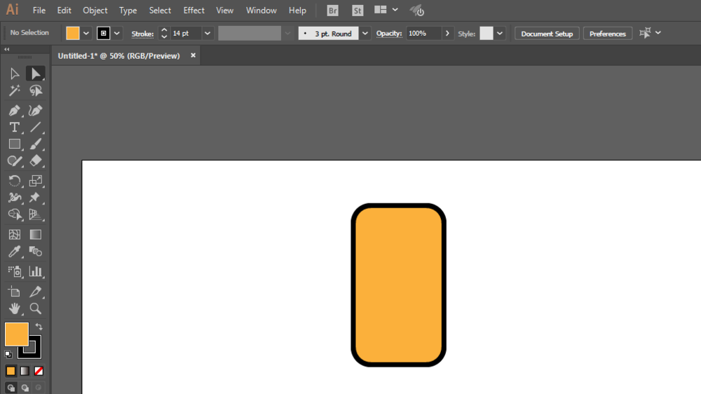 3、选择直接选择工具调整4个锚点为圆角。