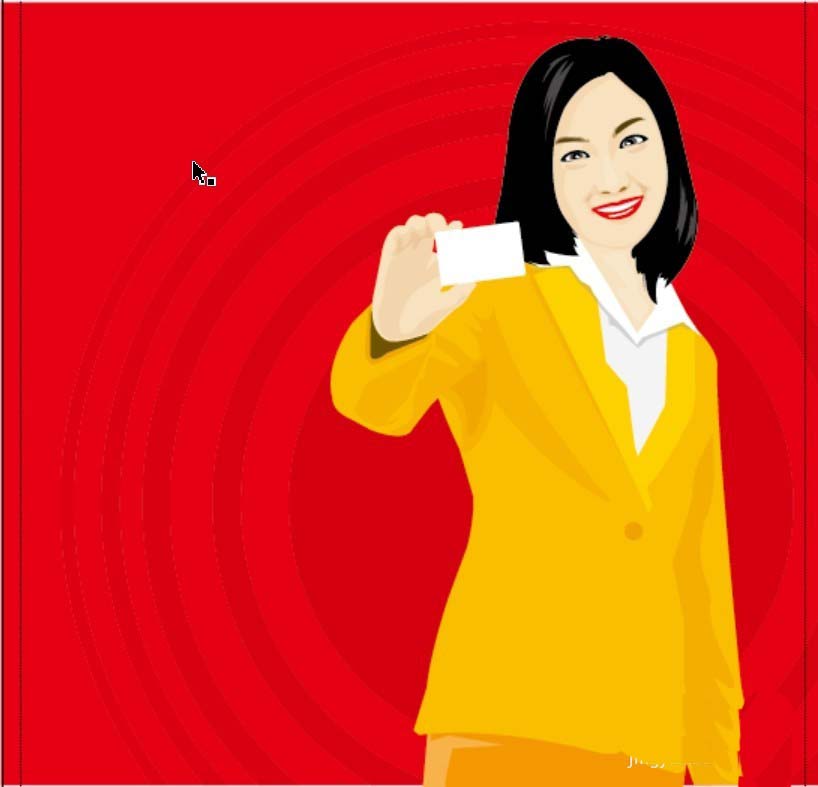 8、画出女子的手指动作路径,我们用粉色填充女子的手掌,用暗粉色填充手掌的暗区路径,用灰白色填充女子手里的名片路径,完成微笑女人广告画设计。