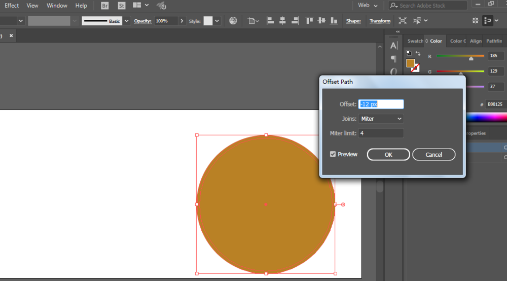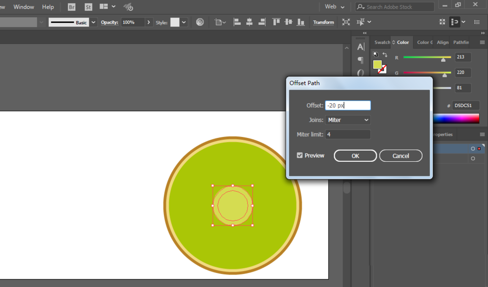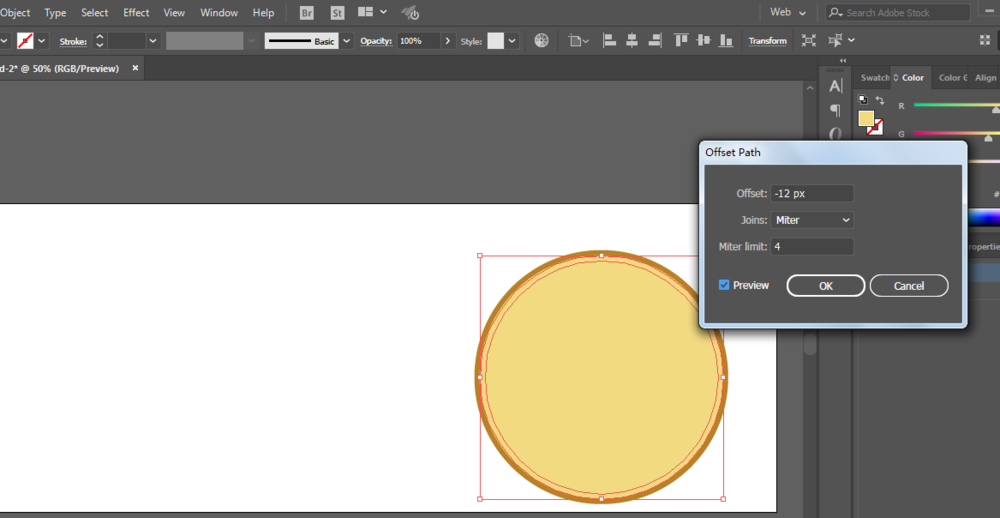 3、偏移路径,绘制一个小一点的,填充241、218、128。