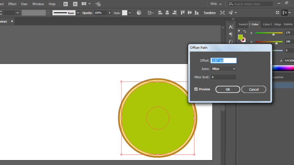 4、偏移路径再次处理,填充颜色170、198、6。
