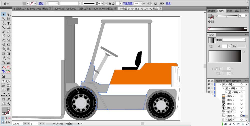 7、填充叉车下方的车体为中性灰黑色,对于叉车车体的其它细节元素也一一填充。叉车图片设计完成。