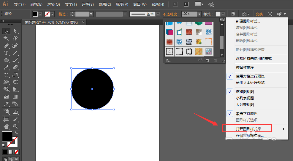 4、在扩展选项栏中,继续找到如图所示选项-图形样式库