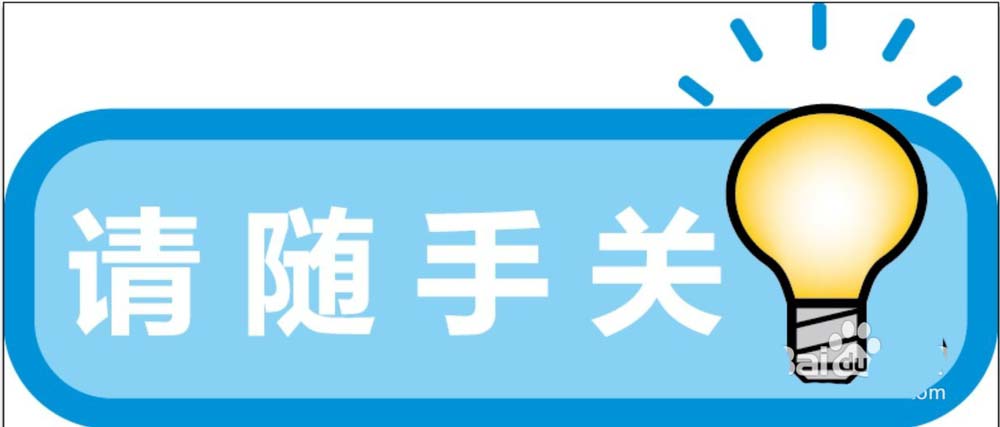 7、选择文字工具打出请随手关的字样,调整文字的大小到合适的数值,用白色填充文字,完成关灯标识设计。