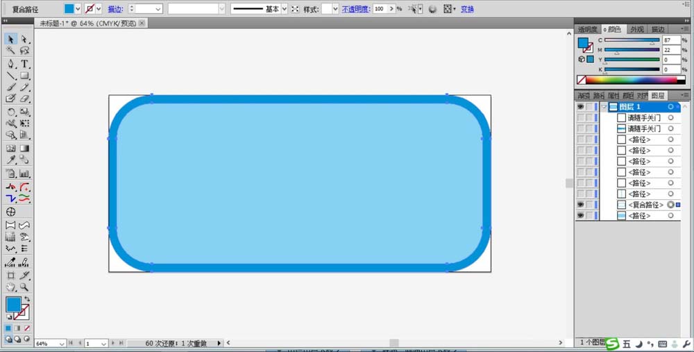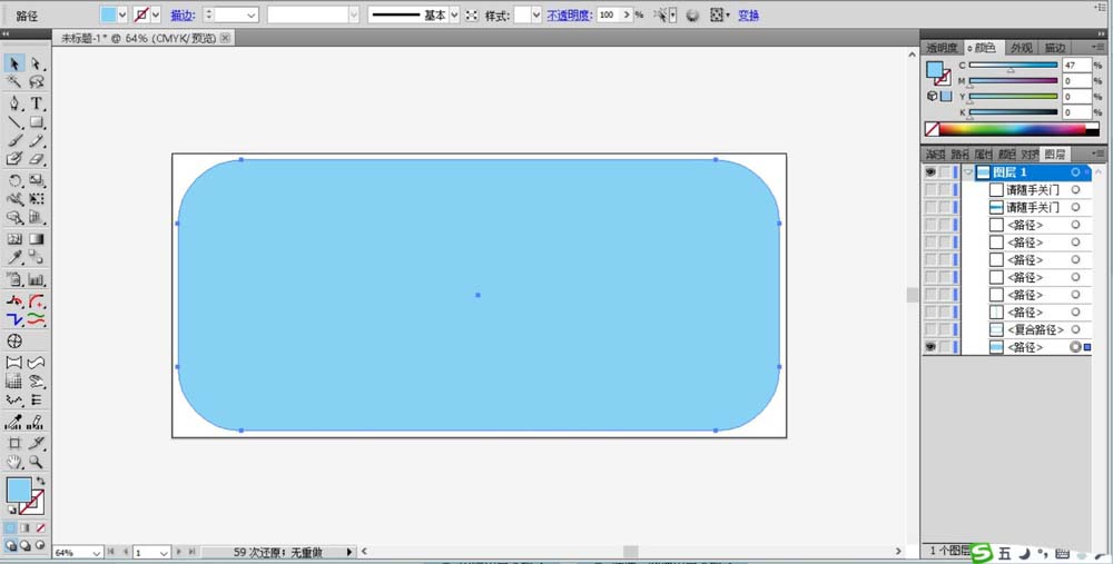 1、选择圆角矩形工具绘制出一个大小合适的矩形路径并用天蓝色来填充作为背景。