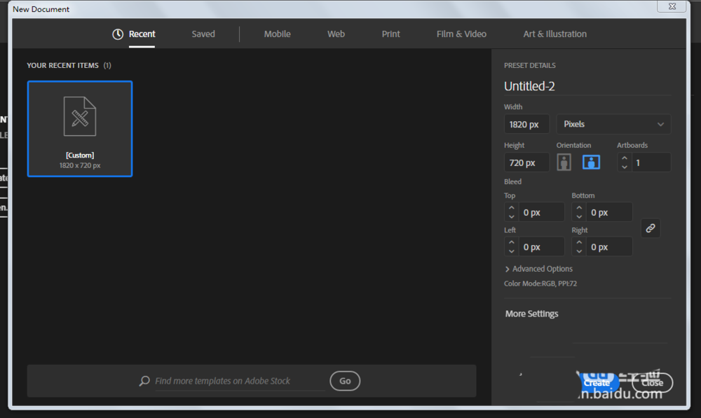 1、打开软件,新建一个RBG文档,尺寸大小任意即可。