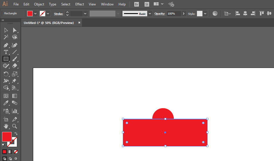 3、矩形工具绘制长方形,形状生成工具使得圆形分成两个部分,填充不一样的颜色。