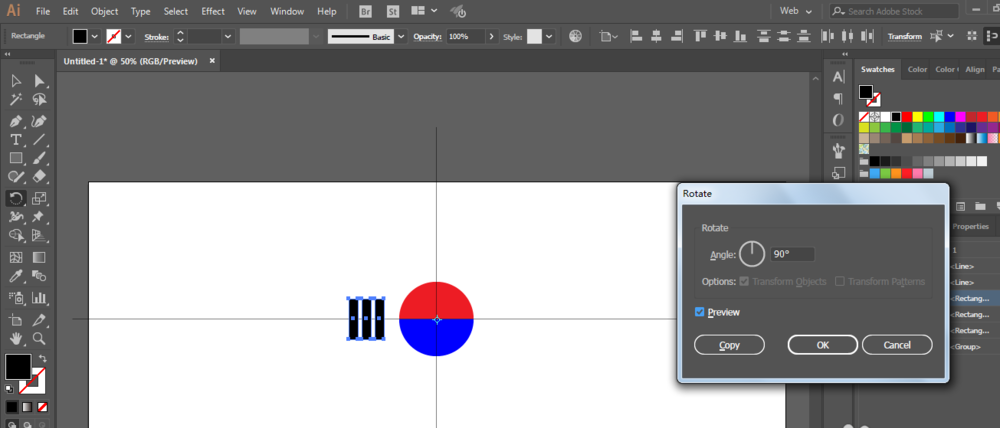 6、复制三份矩形,90度旋转即可。