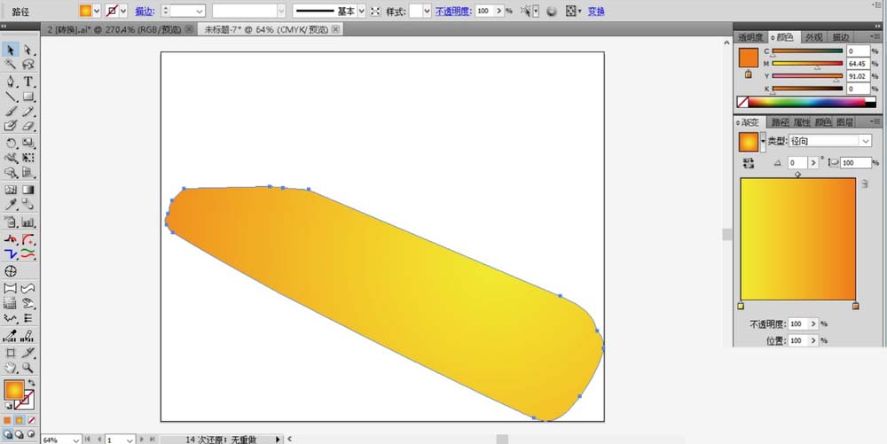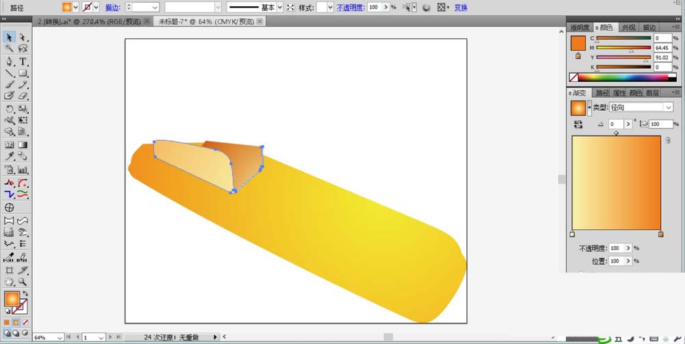 1、先画出订书机的底座基本轮廓,我们用橙黄色的渐变填充这样的一个轮廓。