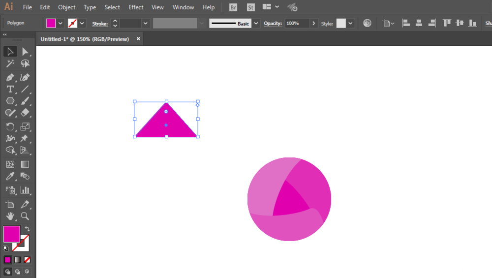 5、多边形工具创建一个三角形,锚点工具调整图形。
