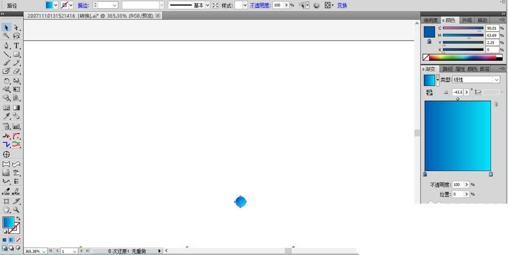1、使用圆形工具画出一个正圆形作为车轮的中心,我们填充蓝色的渐变。