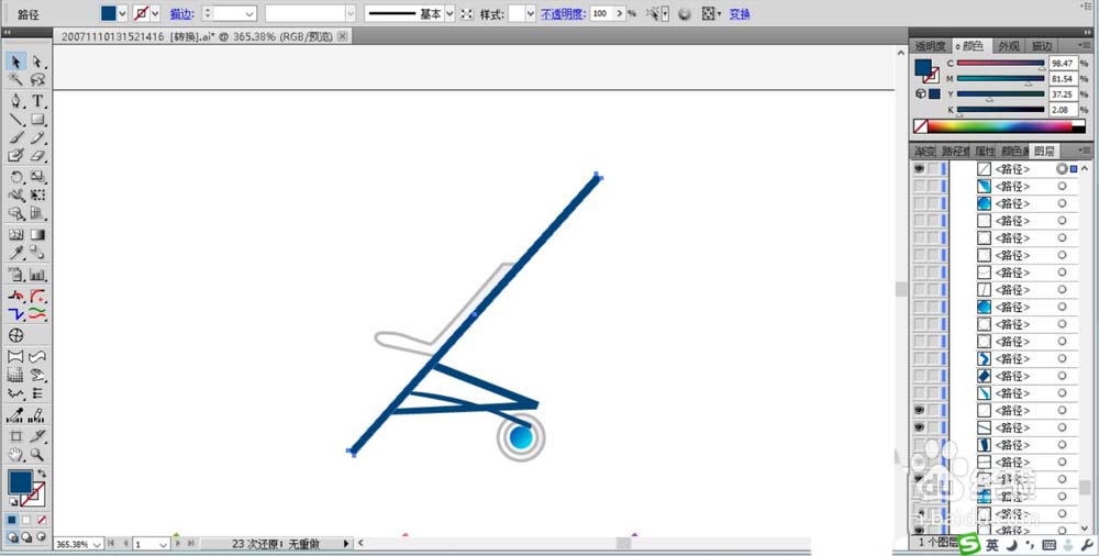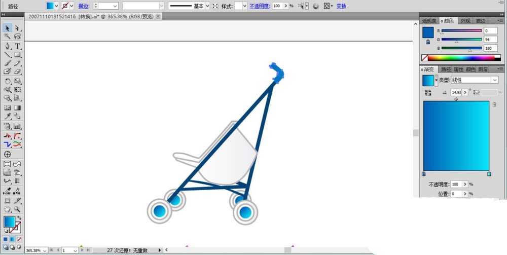 5、继续绘制出婴儿车的车把手路径并用蓝色的渐变填充。