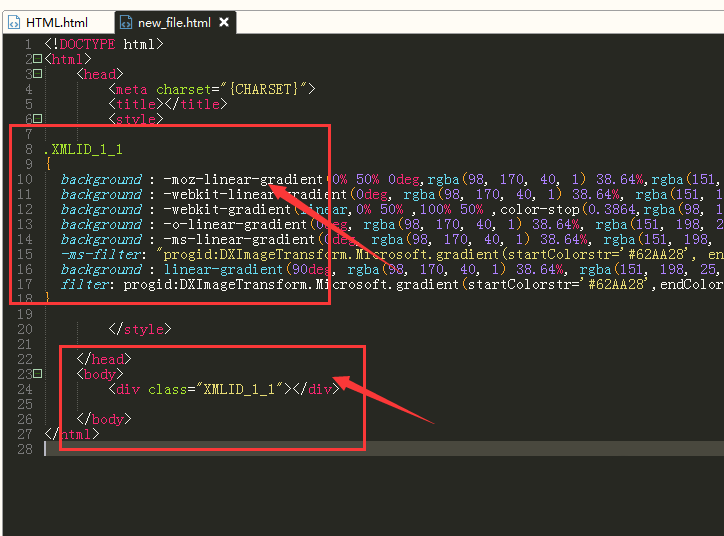 7、当我们保存后,在浏览器中就可以看到渐变效果添加到了自己的文件中了,如图所示。