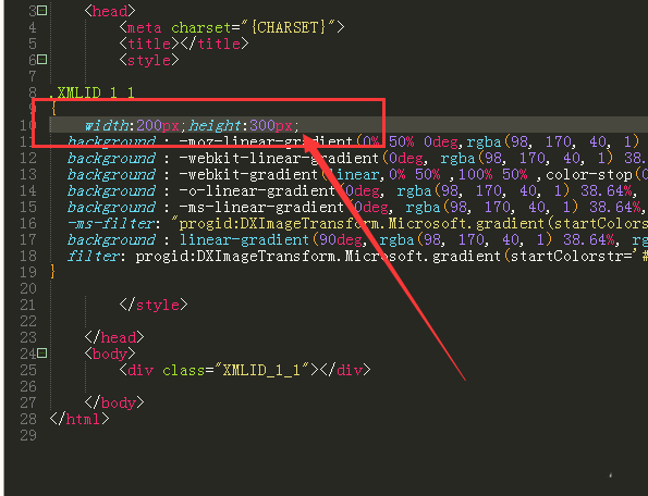 6、另外,css样式中只是给了物体的渐变样式等,并没有给出物体的宽高属性,所以我们要自己给图形添加上宽高属性