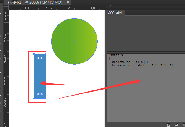 3、当我们点击这个图形,在css属性面板中就会出现他的css效果,如图所示,是一窜的代码