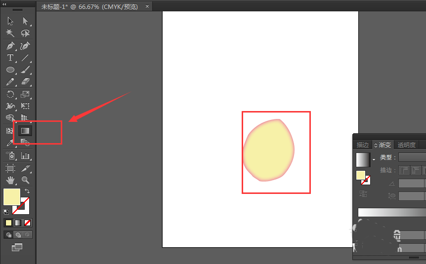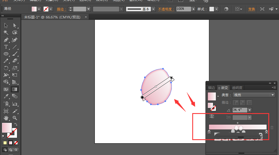 5、设置颜色为淡粉色到白色渐变,如图,调节渐变角度,这样一个花瓣效果做好了