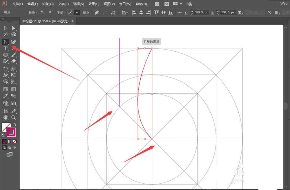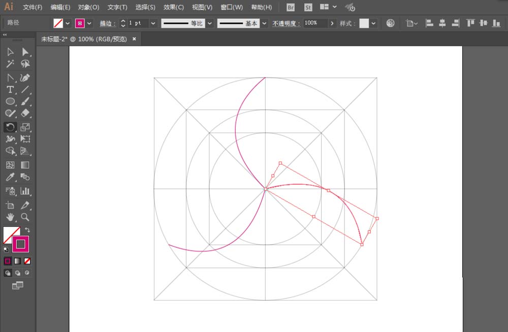 2、矩形工具绘制一个正方形,直线工具绘制4根直线,椭圆工具绘制圆形。同样的方法继续往里面绘制。