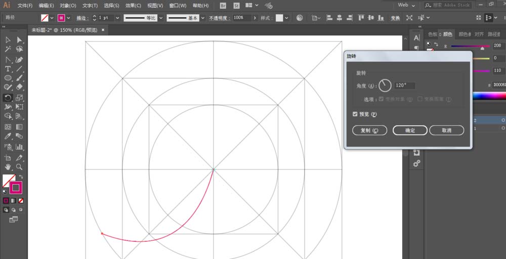 4、旋转复制120度,进行偏移路径处理,同样旋转120度并且复制,新建一个圆形,然后用形状生成工具去掉不要的部分。