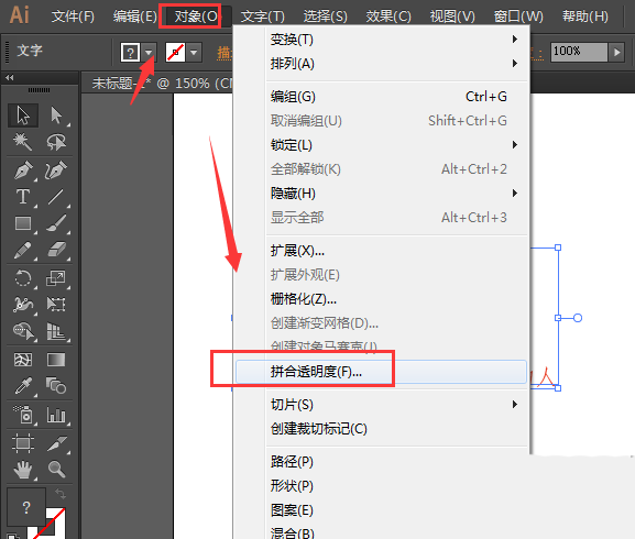3、然后打开对象中的拼合透明度选项,如图所示