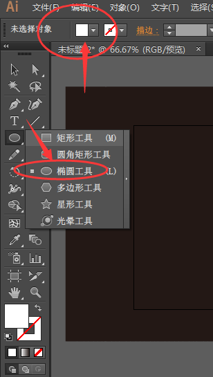 2、然后选择左侧的椭圆工具选项,填充颜色为白色,描边设置关闭掉