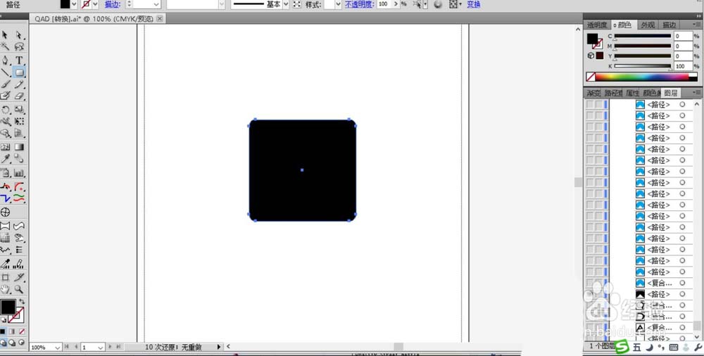 1、先用矩形工具画出一个圆角的等边矩形,我们用黑色填充。