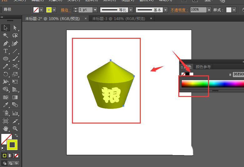 5、最后确定建立后,如果想要更换粮仓的颜色,可以在选中图案的前提下,再用吸笔在颜色面板中吸取颜色即可。