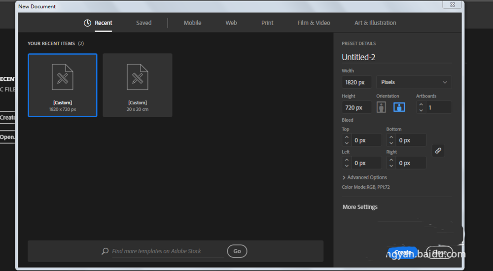1、新建一个1820*720,颜色模式RGB的文档。