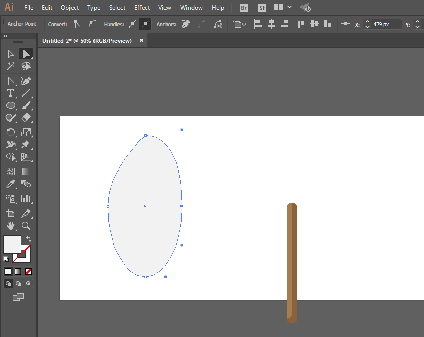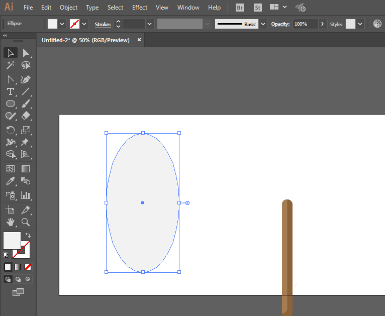 5、椭圆工具绘制椭圆形,调整上头锚点为尖角。