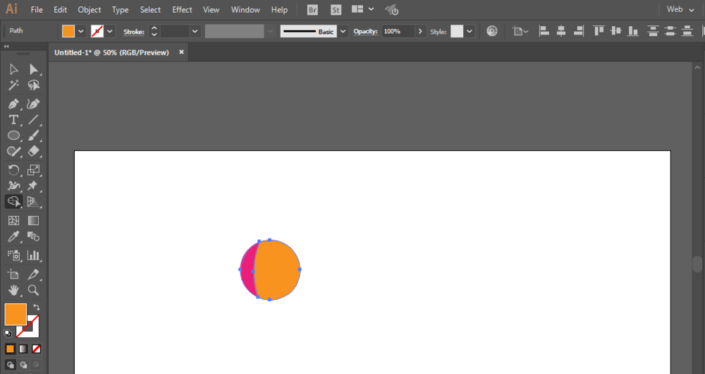 3、绘制一个更大一点的圆形,然后用形状生成工具减去不要的部分,改变一下颜色。