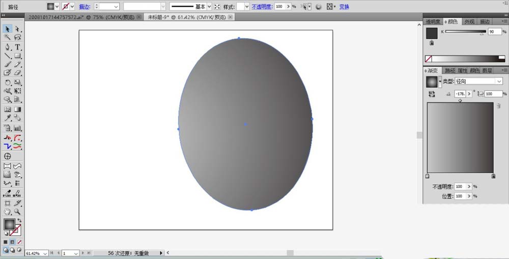 1、选择圆形工具,我们画出相机镜头的基本部件,一个椭圆形的路径,我们用灰黑色的径向渐变填充这个椭圆形。