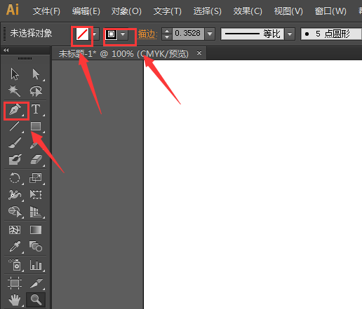 1、打开AI之后在工具箱内找到钢笔工具没然后在上面的设置里设置钢笔的参数如图所示: