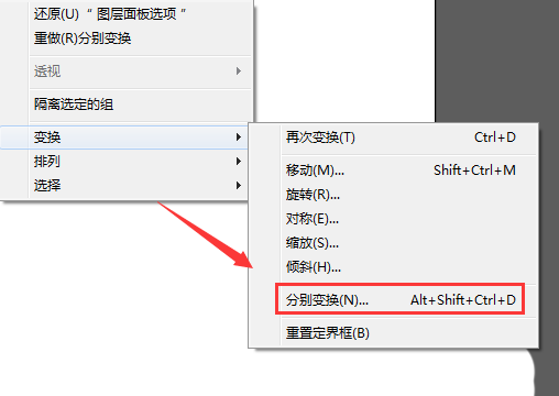 7、选择绘制的图形单击鼠标右键,在右键菜单哪里找到分别变换选项,如图所示:
