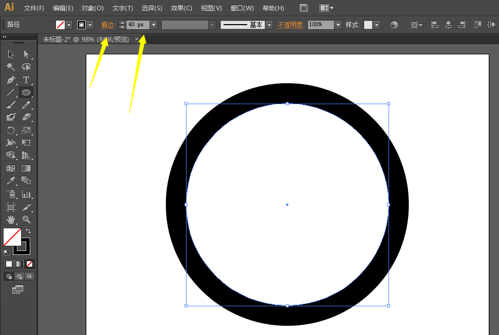 2、用椭圆工具绘制一个圆形,并且增加描边。