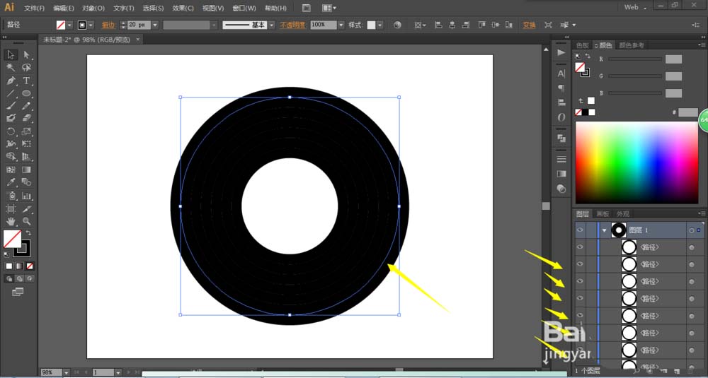AI怎么使用径向渐变绘制多重抽象图形?