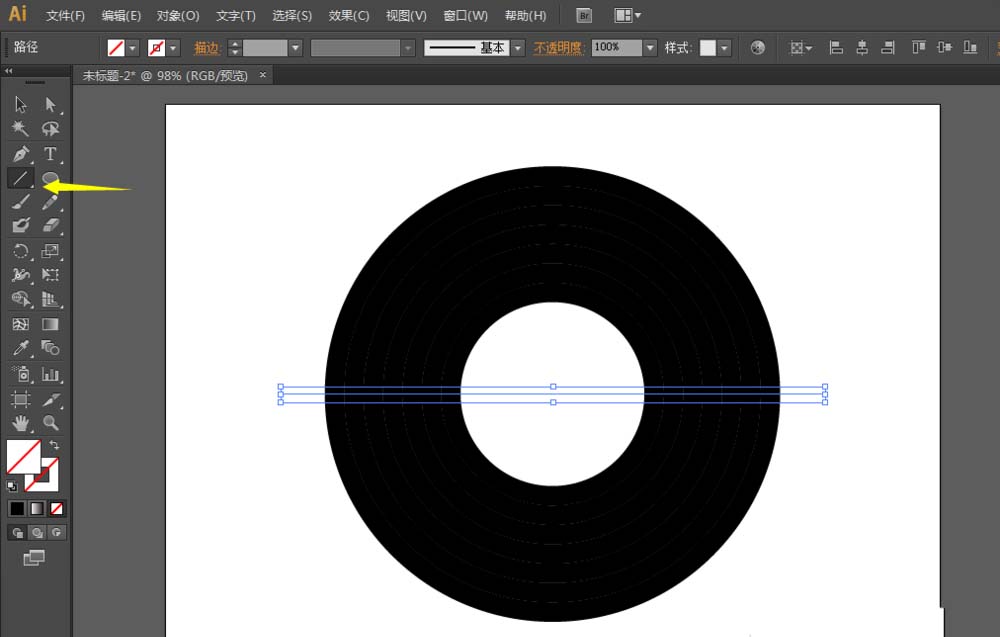 4、用直线工具绘制一根直线,然后对象-路径-分割下方对象,删除下半部分。