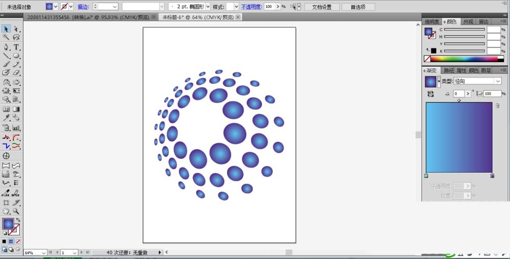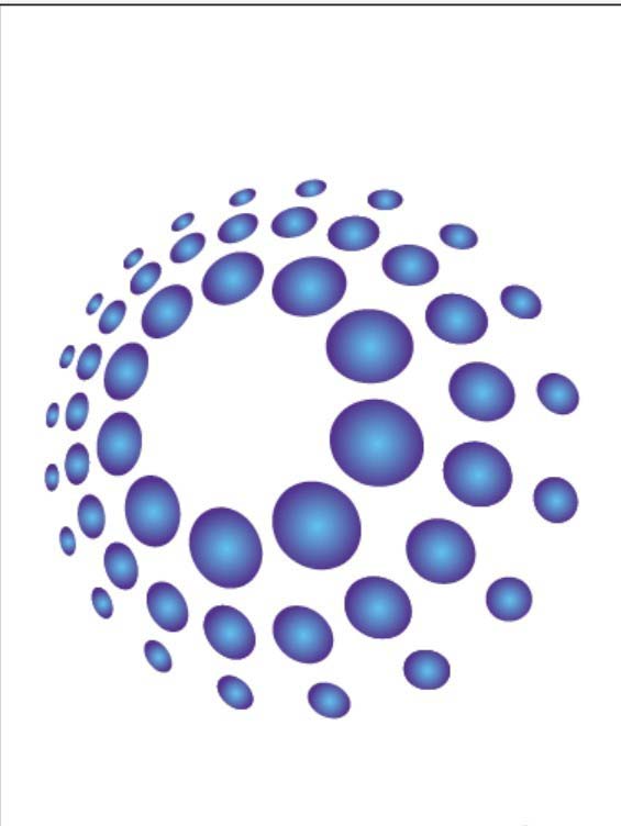 6、把所有的圆形复制与旋转之后形成一个圆环所组成的路径。我们用蓝色的渐变填充这些所有的圆形的路径形成一个圆环标志。