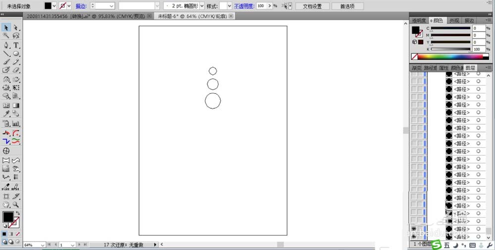 4、接下来,我们用圆形作为圆形来绘制圆环,先画出一个正圆形,再复制出另外的两个圆形,在形状上面逐渐变小。
