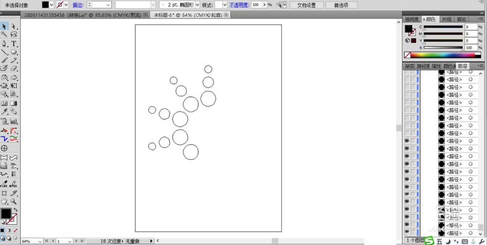 7、我们可以对于圆环进行一定的形状调整,让左上角的圆形在竖直方向变小,让右下的圆形在竖直方向变长,从而绘制出一个独特视角的圆环标志。