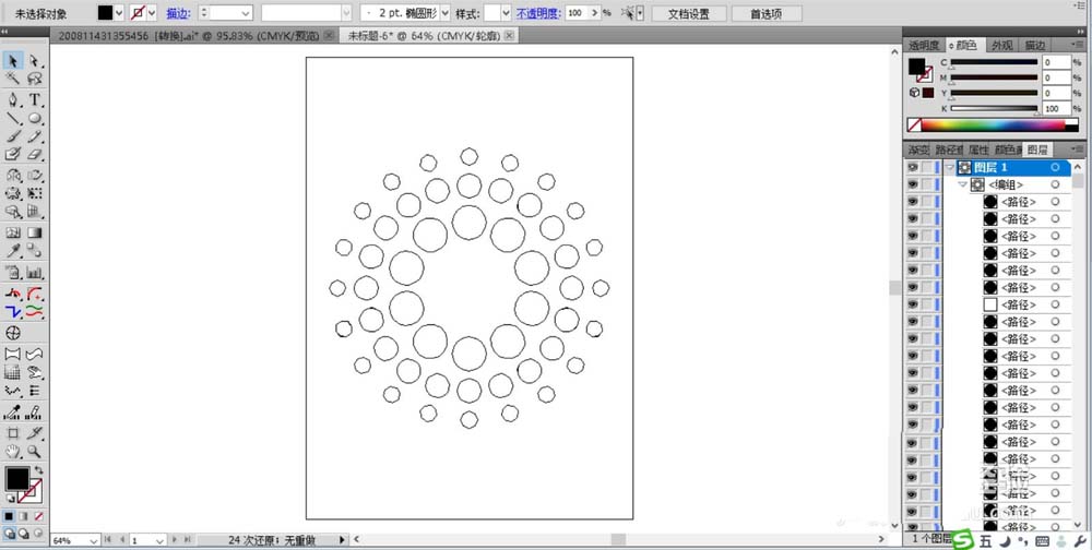 5、我们让三个圆形组成一个群组,再不断的围绕着圆形进行复制与旋转。