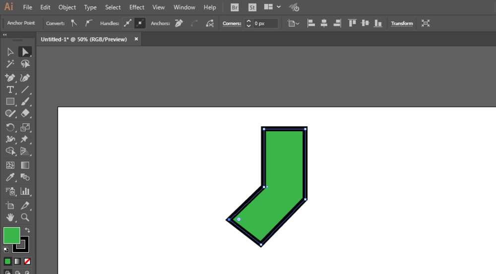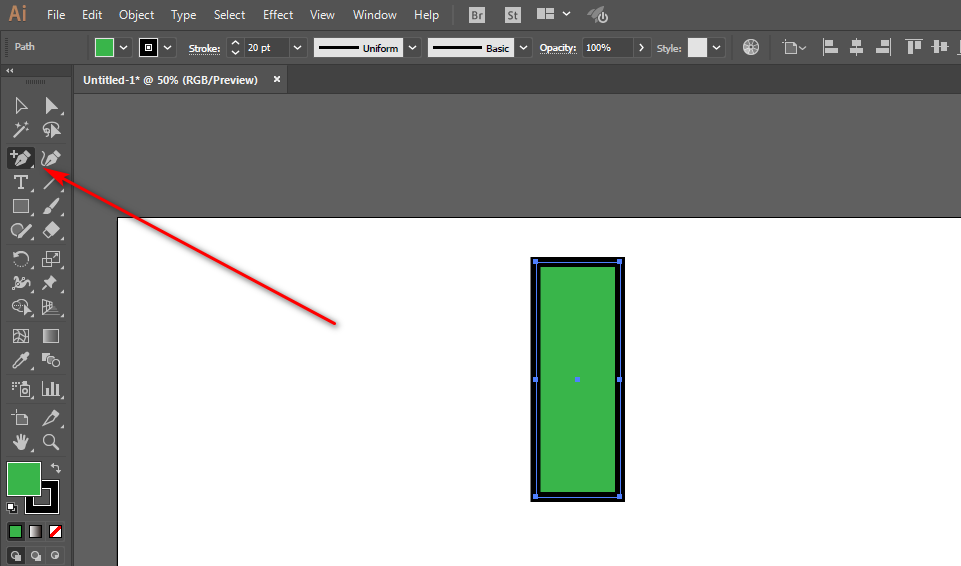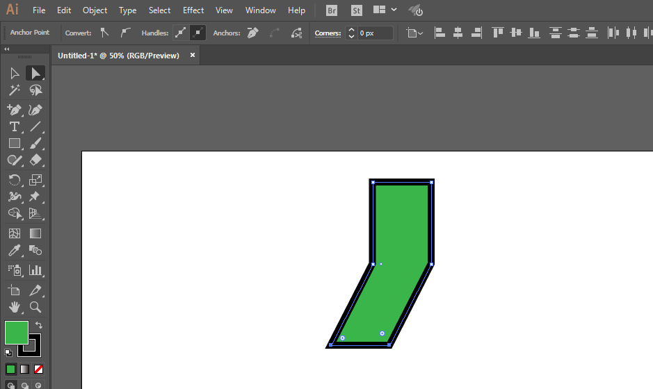 2、矩形工具绘制长方形,添加两个锚点。