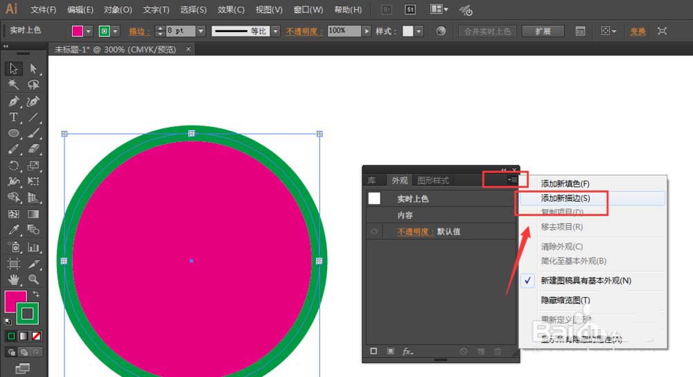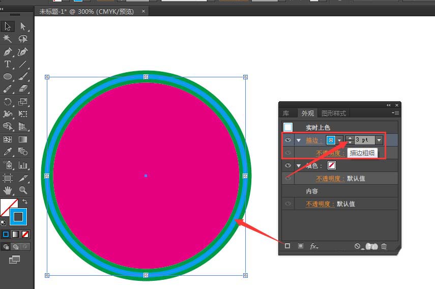 3、另外在这里也可以调节多个描边的效果,如图打开窗口中的外观设置