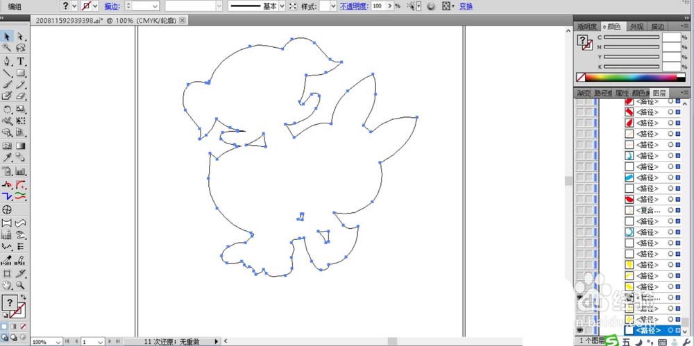 1、先用钢笔绘制出整个动漫小孩的剪影,主要是三小小孩的头部的边缘细节的呈现。