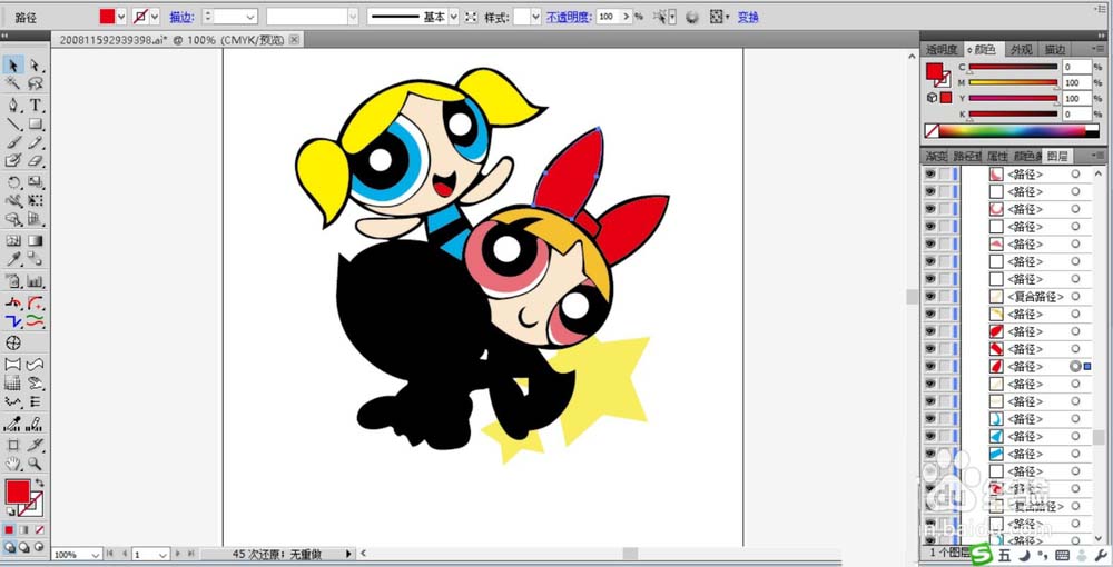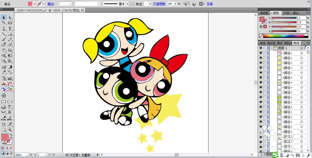 ai中想要绘制飞天小女警,就是三个小孩子开心的玩着一起,它们面貌相似,服饰色调不同,各有各的个性,下面我魔门就来看看详细的绘制方法。