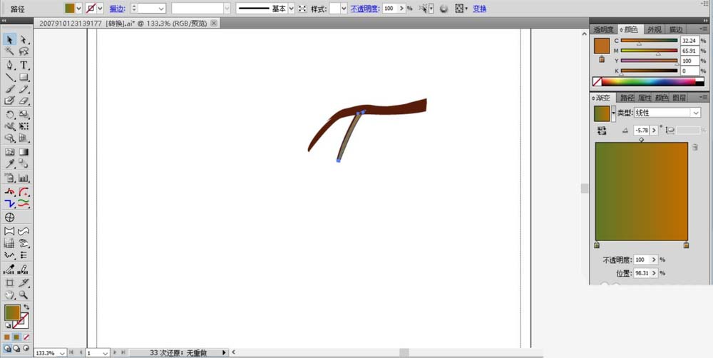 1、用钢笔画出枝条的弯曲路径,我们用棕色来填充,边缘用深棕色进行描边。