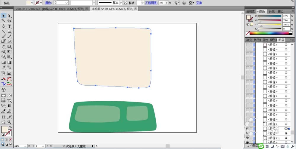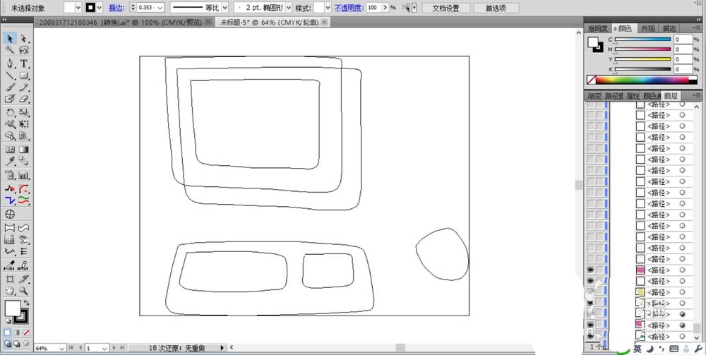 1、先用矩形工具画出屏幕与键盘的轮廓,我们用锚点对于矩形的拐角进行圆滑的处理,对于边线进行一定的弯曲处理,从而让手绘的感觉更突出。