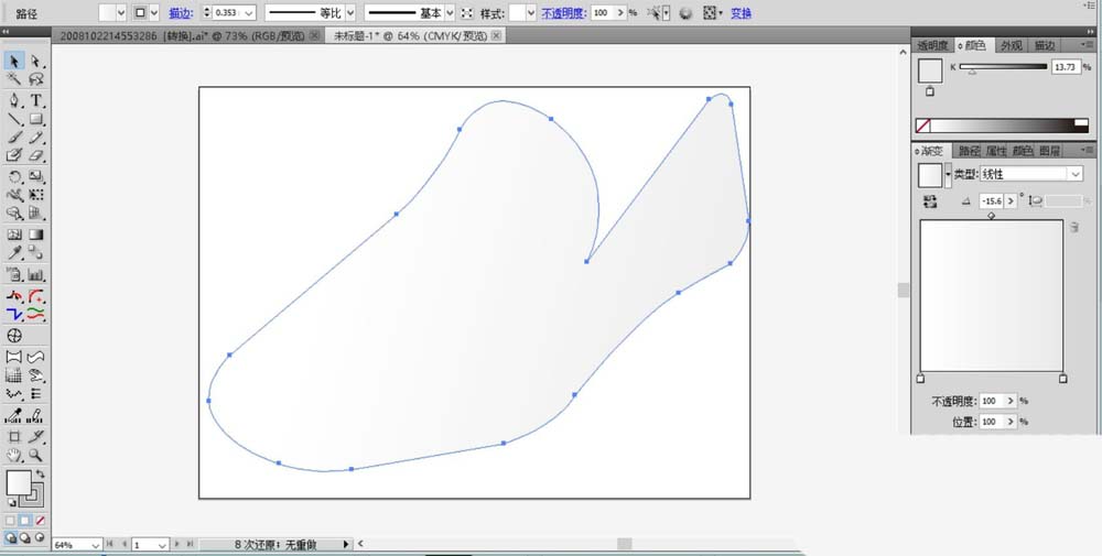 6、接着,我们用钢笔绘制出鞋带的四个锚点,我们用灰白色的渐变填充这个鞋带路径。