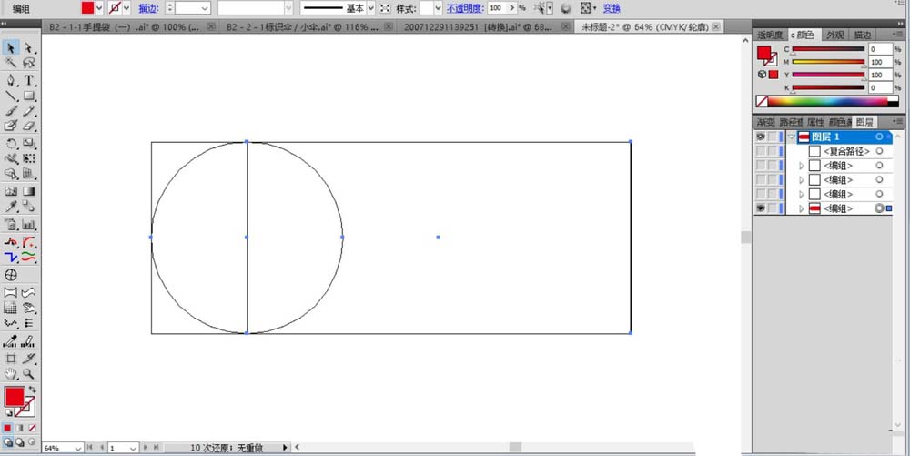 1、先来绘制标识的形状,我们用圆形与矩形进行上下对齐,让矩形与圆形的中心线在一条竖线上,合并圆形与矩形。