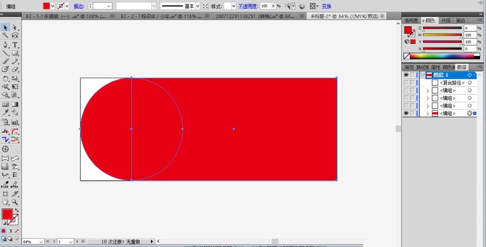 2、我们填充这个标识的形状为红色并继续选择文字工具进行相关文字的设计。