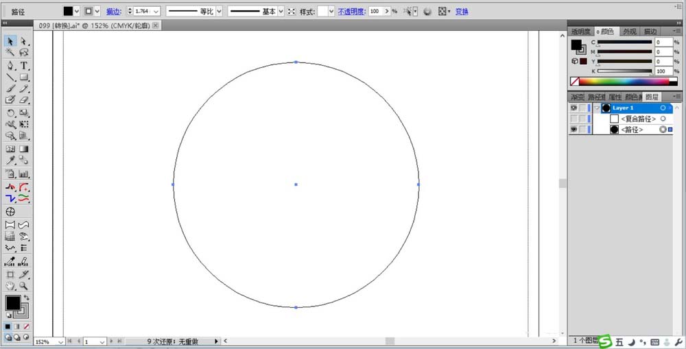 1、选择圆形工具画出一个正圆形在画面的正中间。